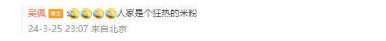 博主“吳佩”在評(píng)論區(qū)表示,該媒體人是個(gè)狂熱的米粉。