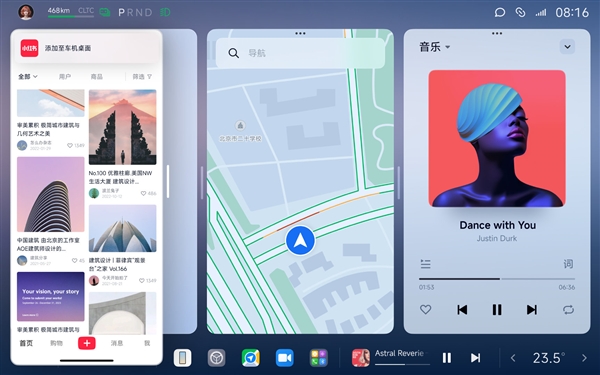 手機只提供算力,其余顯示、聲音和交互都在車機上執(zhí)行,中控屏上的App不是簡單的投屏,而是可以獨立操作,這給了車機使用手機全部生態(tài)應(yīng)用的潛力。