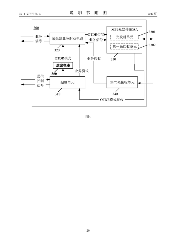其中,多種工作模式包括,OTDR模式和業(yè)務(wù)模式中的至少一種,激光器業(yè)務(wù)驅(qū)動電路基于目標(biāo)信號,向光發(fā)射單元輸出激光信號。
