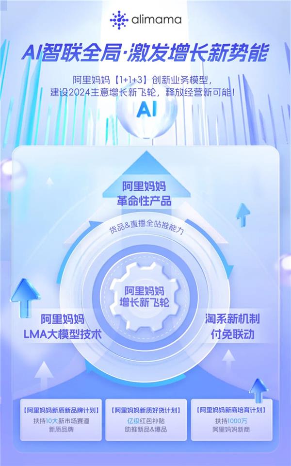 在AI技術(shù)重塑商業(yè)格局的2024年,新紅利時(shí)代的大幕已然拉起。本文解讀阿里媽媽全新發(fā)布的【1+1+3】創(chuàng)新業(yè)務(wù)模型,通過(guò)1個(gè)LMA大模型技術(shù)+1個(gè)革命性新產(chǎn)品+3大商家扶持計(jì)劃,結(jié)合淘系付免聯(lián)動(dòng)機(jī)制變革,建設(shè)2024生意增長(zhǎng)新飛輪,釋放經(jīng)營(yíng)新可能!