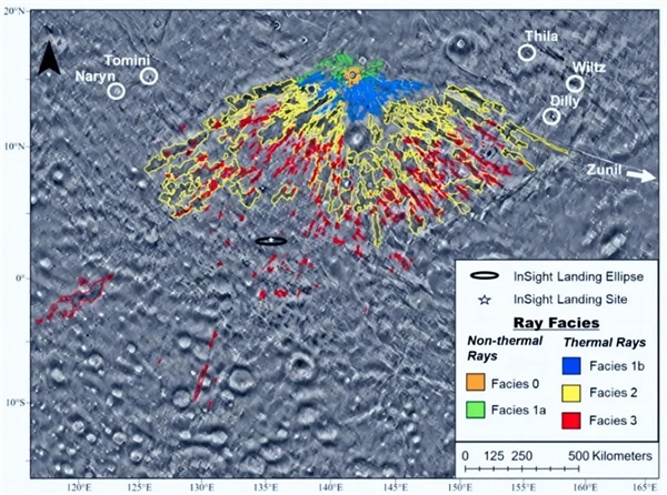 它的周圍有一個龐大的“射線輻射系統(tǒng)”,從撞擊中心拋出的大量噴射物,造就了清晰可見的輻射帶。