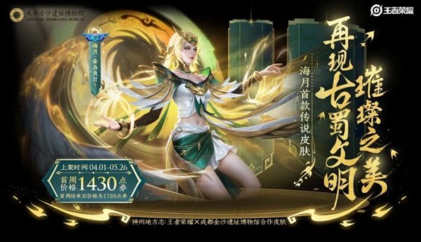 海月-金烏負(fù)日皮膚將于4月1日0點(diǎn)上架,原價(jià)1430點(diǎn)券,但現(xiàn)在參與活動(dòng)的玩家可以以最低988點(diǎn)券購(gòu)得。