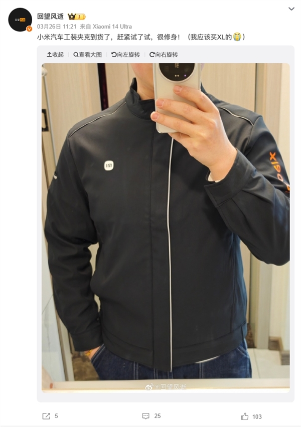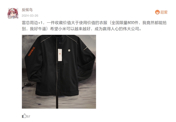 限量800件!首批雷軍同款小米汽車工裝到貨:被炒到999元