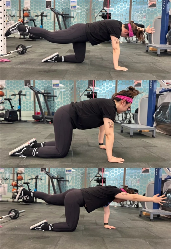 從四足位起始,保持背部平直,同時(shí)伸展對(duì)側(cè)的手臂和腿部直到與身體成一直線,然后緩慢回到起始位置并換另一側(cè)執(zhí)行。這一動(dòng)作有助于提高脊柱的穩(wěn)定性,減少因不平衡造成的腰背部負(fù)擔(dān)。