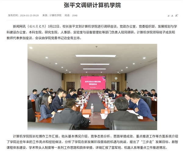 3月27日消息,據(jù)武漢大學官網(wǎng)新聞顯示,近日武漢大學校長張平文到計算機學院進行調(diào)研座談。