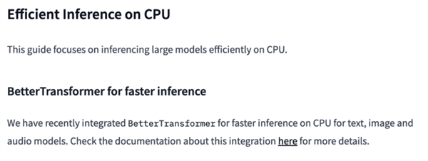 而且也正如我們剛才所提到的,從Hugging Face所提供的優(yōu)化教程來(lái)看,只需要簡(jiǎn)單的幾步,就可以讓CPU快速部署用于高效推理。