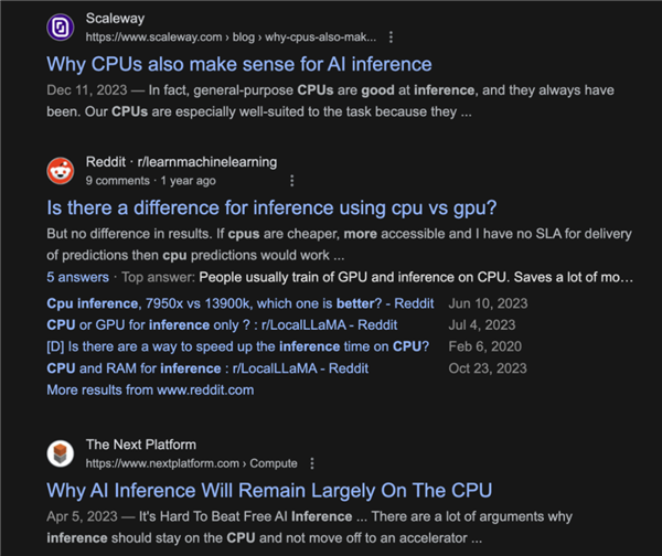 就這樣,在GPU及其他專(zhuān)用加速芯片一統(tǒng)AI訓(xùn)練天下的時(shí)候,CPU在推理,包括大模型推理這件事上似乎辟出了一條“蹊徑”,而且與之相關(guān)的討論熱度居然也逐漸高了起來(lái)。