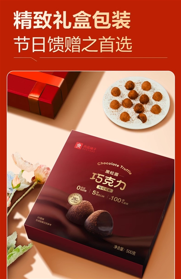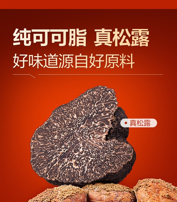 純可可脂+真松露,厄瓜多爾可可豆,0反式脂肪酸。