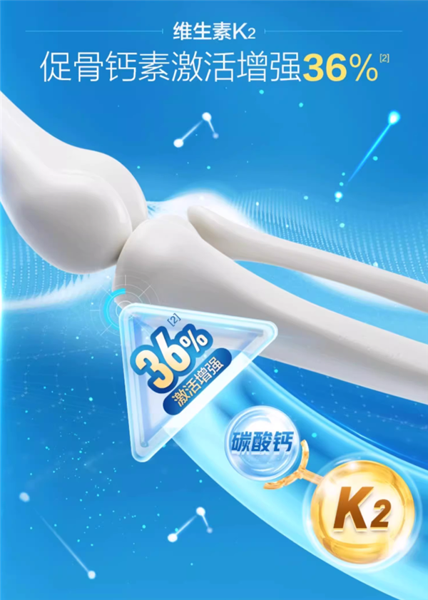 維生素K2可激活“捕”蛋白”,形成鈣爪,捕捉血液中的游離鈣和血管壁的沉積鈣,將其輸送到骨骼。