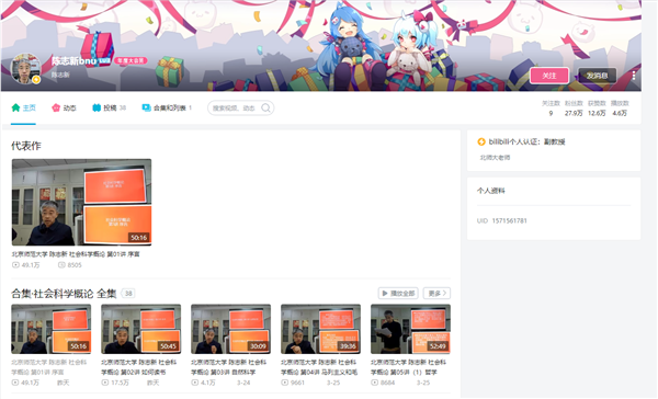 截稿前,陳志新的B站賬號“陳志新bnu”已經(jīng)擁有27.9萬粉絲。
