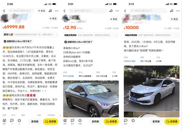 (圖:不少網(wǎng)友在閑魚掛出舊車,為迎接SU7“騰車位”)