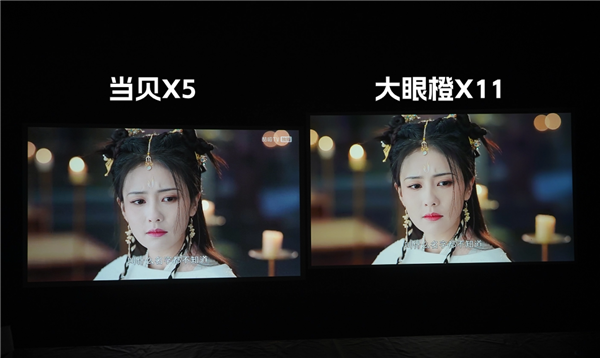 有了前面的一些對(duì)比,在實(shí)際畫面效果的測(cè)試前我就對(duì)兩臺(tái)機(jī)子放低了預(yù)期。不過實(shí)際的表現(xiàn)下來看,全暗環(huán)境下就沒有那么“殘忍”。當(dāng)貝X5雖然有明顯的亮度和色彩優(yōu)勢(shì),也并未有太驚艷之處,大眼橙X11則是存在亮部不足色彩發(fā)黃的情況,也不是影響巨大。