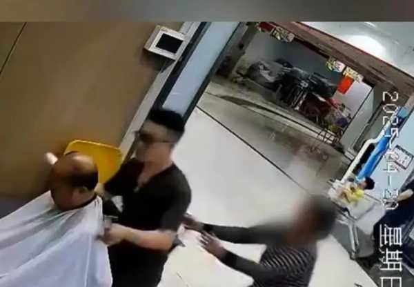 店主給顧客理發(fā) 女子身后“突襲”