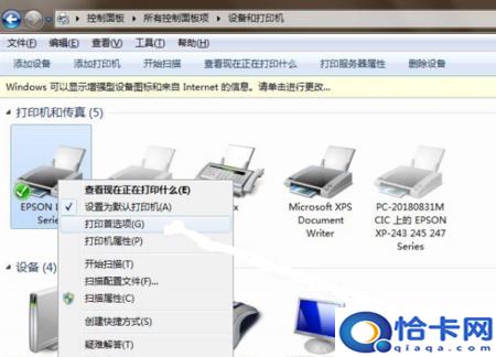 2、進(jìn)入設(shè)備和打印機(jī)選項,右鍵需要清洗的打印機(jī)設(shè)備名稱;