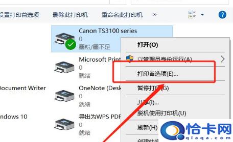 2、右鍵需要進(jìn)行檢測和維修的打印機(jī)設(shè)備,選擇打印機(jī)首選項。