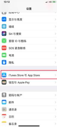 二、在“設(shè)置”界面內(nèi)向下滑動(dòng),找到“iTunes與App Store”一項(xiàng)并打開(kāi)