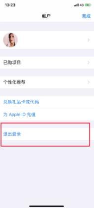 三、進(jìn)入“賬戶(hù)”后,點(diǎn)擊“退出登錄”后即可重新登陸新的Apple ID
