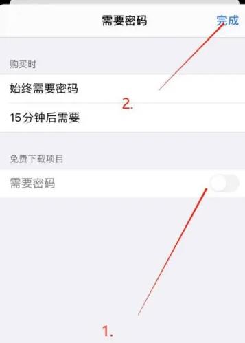 3、然后將需要密碼復選框關閉,并且點擊完成。