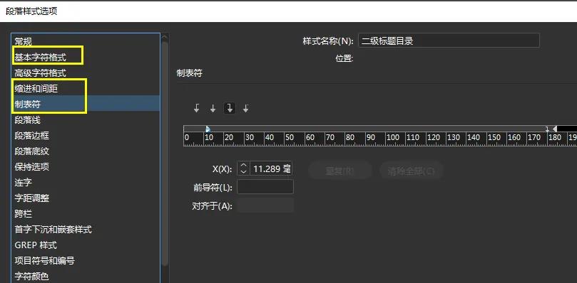 4、我們可以將光標插入目錄的一個標題之中,然后在段落樣式面板中會自動顯示該標題所應用的段落樣式,然后雙擊該段落樣式進行修改,修改內容主要是字體、字號、首行縮進或左縮進以及添加治標符等,如圖所示。