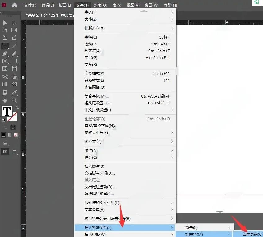 3、然后打開文字菜單,選擇下方欄中的插入當前頁碼