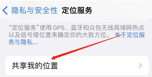 2、點開定位服務頁,跳轉到“共享我的位置”界面。