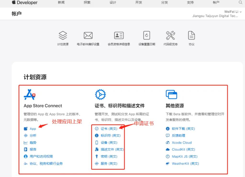 12、申請完后交費(fèi)99美元一年,然后會(huì)進(jìn)行審核,期間可能會(huì)電話核實(shí)。審核通過后,重新登錄https://developer.apple.com/,點(diǎn)擊Account會(huì)看到以下菜單,這時(shí)賬號(hào)就注冊成功了。