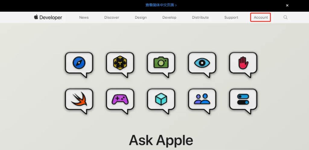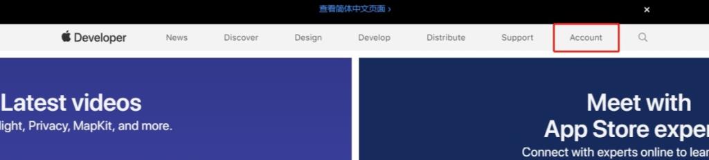 2、打開https://developer.apple.com/,點(diǎn)擊Account菜單