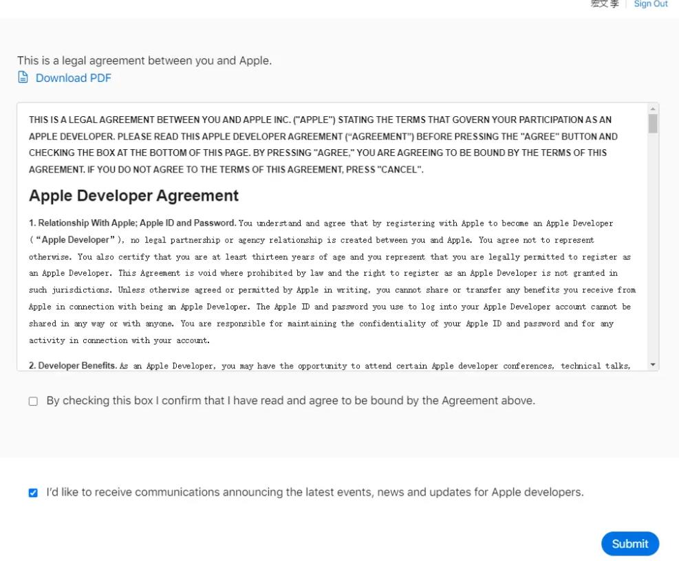 3、點(diǎn)擊“Submit”同意協(xié)議