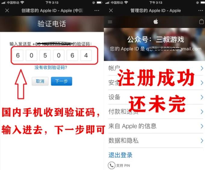 第三步:驗(yàn)證完郵箱之后,接著系統(tǒng)會(huì)發(fā)送驗(yàn)證碼到你手機(jī),按照要求填寫(xiě)即可。這時(shí),一個(gè)臺(tái)灣的Apple ID就已經(jīng)注冊(cè)成功,但是還不能使用,還需接下來(lái)的操作。