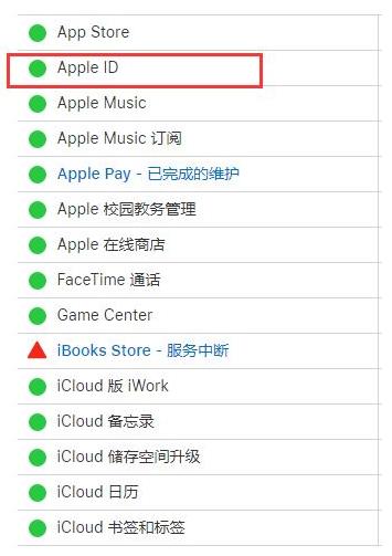 點此查看蘋果官網(wǎng)“系統(tǒng)狀態(tài)”頁面上的列表。如果Apple ID不是顯示綠色圓點,則說明蘋果服務(wù)器當(dāng)前可能出現(xiàn)了狀況,您可以稍后再嘗試登錄。
