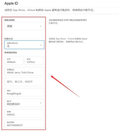 9、付款方式選擇“無”,賬單寄送地址中的“名字”“姓氏”“街道地址”“城市”都可以隨便填寫,哪怕都填寫“aaaaaa”都可以!