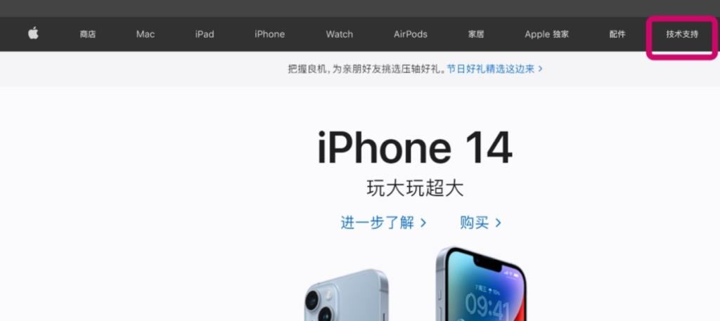 1、在瀏覽器中打開蘋果官網(wǎng):https://www.apple.com.cn/,進入官網(wǎng),選擇上面標(biāo)題中“技術(shù)支持”