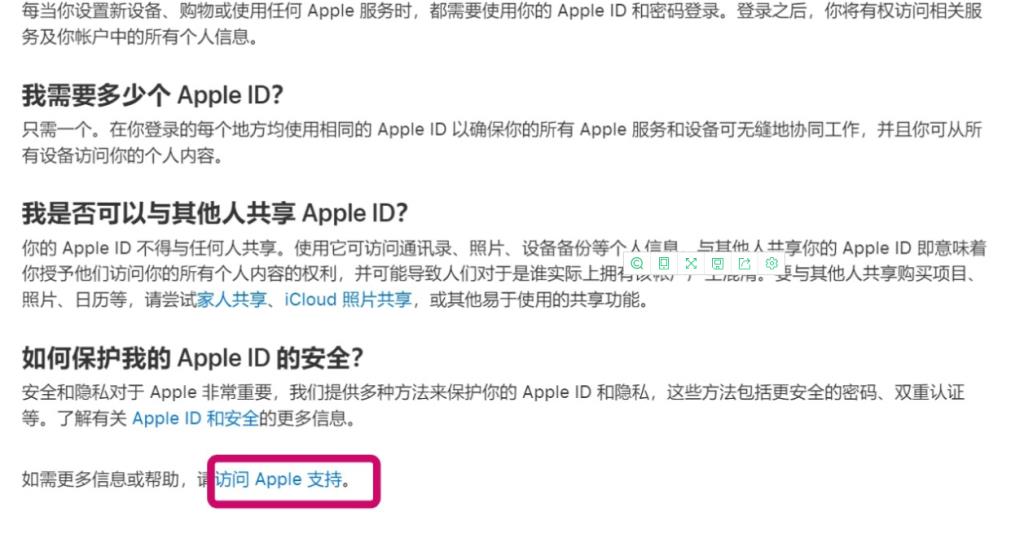 4、到常見問題的頁面,滑至最下面點擊“訪問Apple支持”
