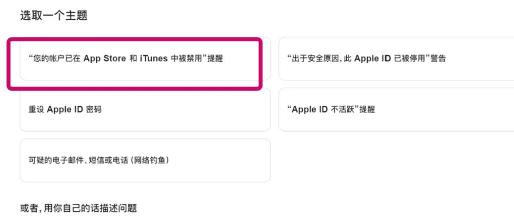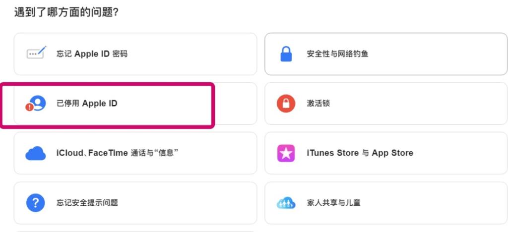 6、在“獲取支持”的頁面后,選擇“已停用Apple ID”。
