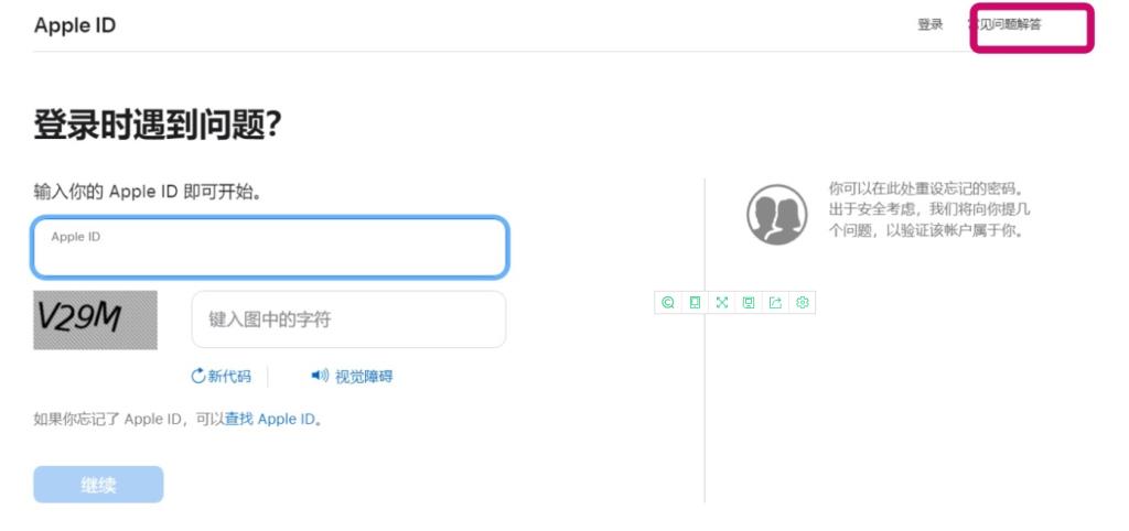 3、在此頁面填入Apple ID 及驗證碼,選擇”繼續(xù)”,ID下面會顯示“此APPLE ID 未激活”,然后截圖保存(后面【第九步】技術(shù)支持的時候會使用到)。如果有蘋果手機登錄app store的截圖,可忽略這一步。后面直接選擇“常見問題解答”!