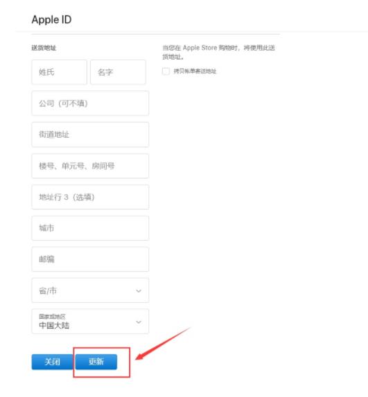 10、賬單寄送地址都填寫完成之后,直接拉到最底部,點擊“更新”。(送貨地址不用填)