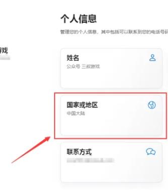 6、登錄上之后,在“個人信息”中點擊“國家或地區(qū)”!