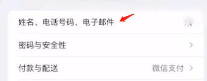2、跳轉到Apple id主頁面之后,點擊姓名、電話號碼及電子郵件一欄。