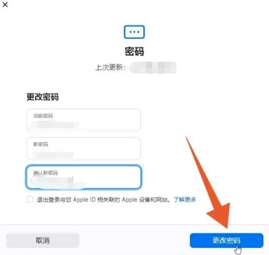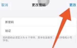3、驗證完成后進(jìn)入更改密碼界面,在輸入欄中輸入更換的密碼,輸入完成后點(diǎn)擊右上角的更改即可。