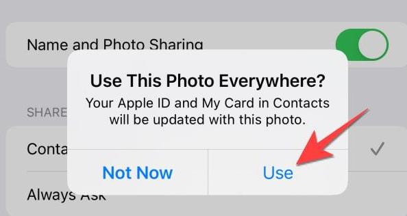 3、您將看到帶有現(xiàn)有照片的 Apple ID 個(gè)人資料(如果您之前分享過(guò))。如果“名稱(chēng)和照片共享”已關(guān)閉,請(qǐng)打開(kāi)它。