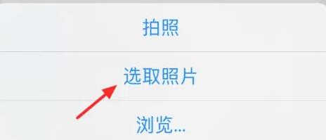 3、出現(xiàn)選項(xiàng),點(diǎn)擊【選取照片】。
