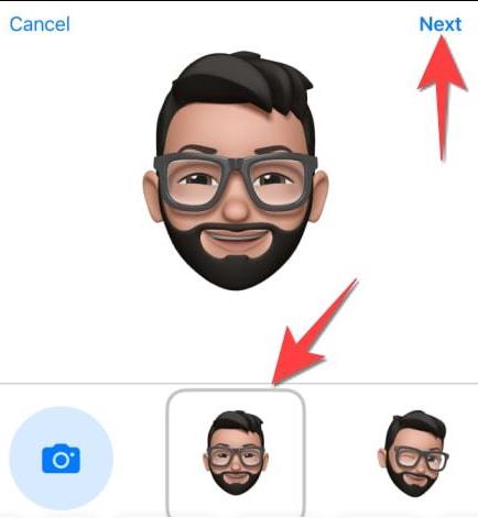7、選擇 Memoji 后,您還可以將其情感設(shè)置為顯示在 Apple ID 中。因此,您可以從現(xiàn)有選項(xiàng)中選擇一個(gè)或創(chuàng)建一個(gè)新選項(xiàng)。選擇一項(xiàng)后選擇“下一步”。