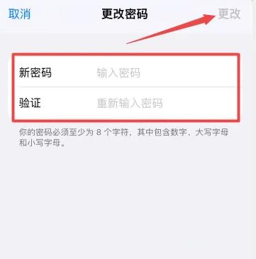 5、輸入需要設置的新的id密碼后,點擊右上角“更改”即可。