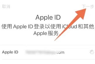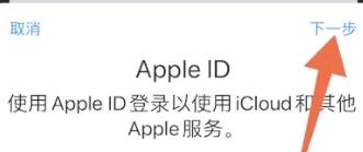 2、跳轉(zhuǎn)到Apple id登錄頁面后,在Apple id這一欄輸入【ID號】,點擊頁面右上方的【下一步】按鈕。