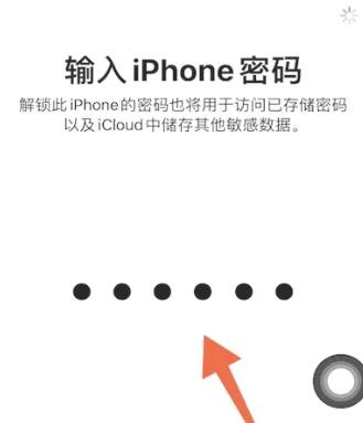 4、頁面中會顯示正在登錄iCloud,跳轉(zhuǎn)到輸入iPhone密碼頁面后,輸入自己手機的【鎖屏密碼】,即可成功登錄蘋果id。