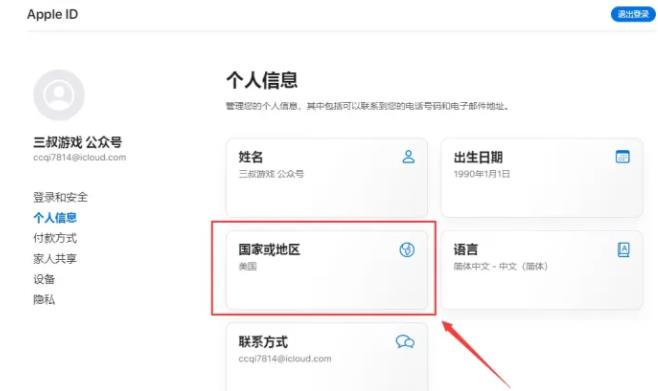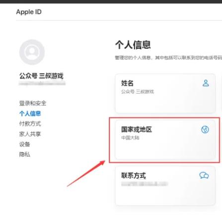 6、登錄上之后,在“個人信息”中點擊“國家或地區(qū)”!
