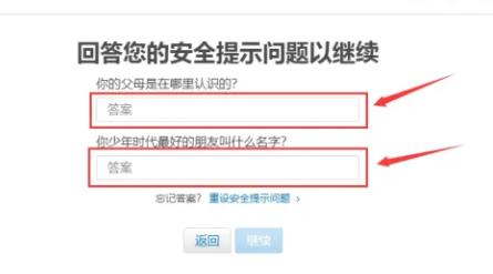 3、輸入自己國內(nèi)ID的正確密保問答的答案,然后點擊“繼續(xù)”!