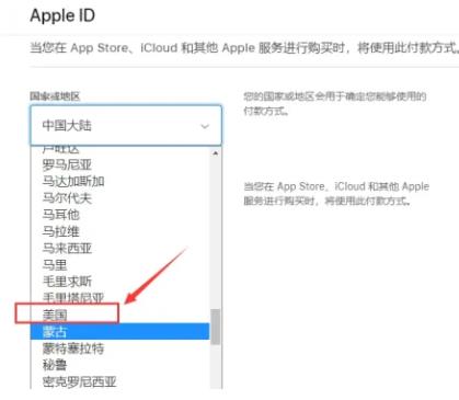 8、在“國家或地區(qū)”中選擇“美國”(當(dāng)然你要注冊其它地區(qū),你就選擇對應(yīng)的地區(qū))。