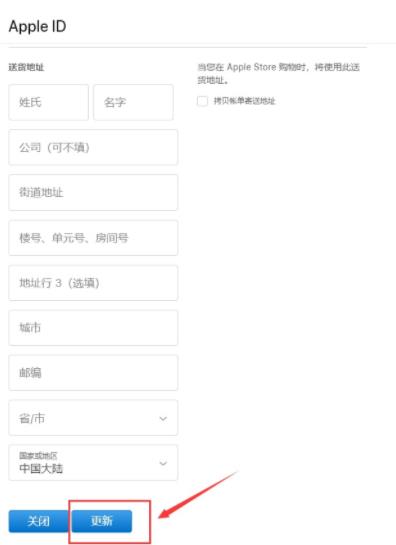 10、賬單寄送地址都填寫完成之后,直接拉到最底部,點擊“更新”。(送貨地址不用填)