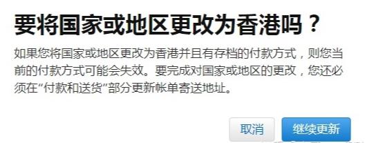 4、選擇香港地區(qū)后,它會彈出“要將國家或地區(qū)更改為香港嗎?”選擇下方的“繼續(xù)更新”